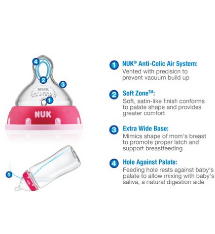 寬大的奶嘴設(shè)計非常接近媽媽的乳房,能最大的降低寶寶對奶瓶的異物感。NUK的專利空氣系�(tǒng)可以防止寶寶在喝奶過程中出現(xiàn)真空情況,避免奶水由于真空產(chǎn)生泡沫而引起寶寶的不適。人體工程學(xué)原理,易抓握。流線型的瓶身設(shè)�,萌萌的顏色,非常美觀。美亞僅�$7.49 ,約48元�